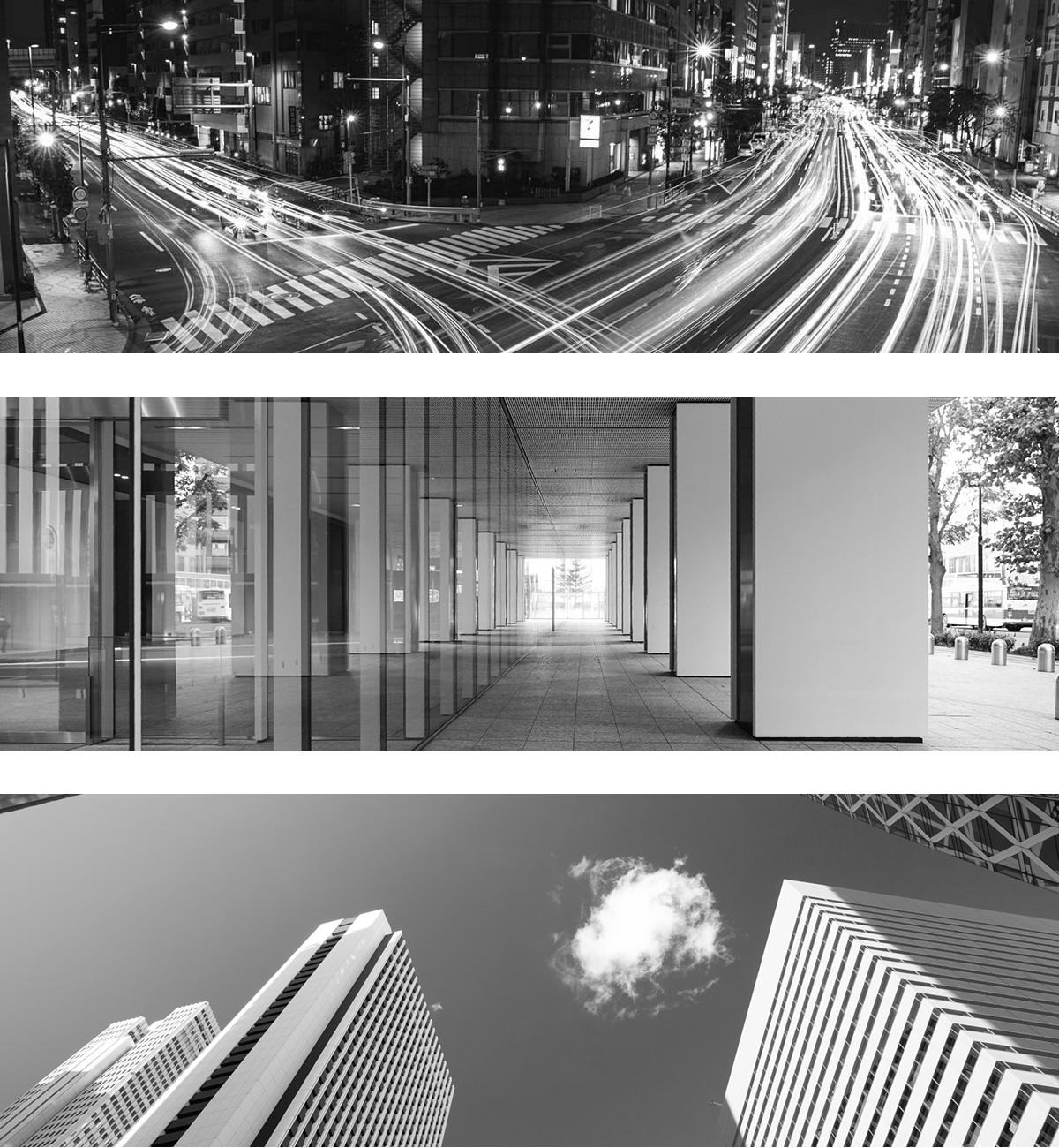 このテンプレートはモノトーンで制作しますので、都会的で重厚な凛としたイメージを与えます。